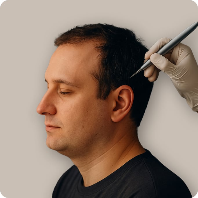 Temple hairline transplant is a hair restoration procedure where hair follicles are extracted from the donor site and implanted into the temple area. This procedure restores youthful and natural looking temple hairlines, which enhances appearance. Unlike traditional methods, QHT Clinic uses its advanced QHT technique with superfine cole punches and SAVA implanters to ensure the thick density, natural hairline design, and long-term results.